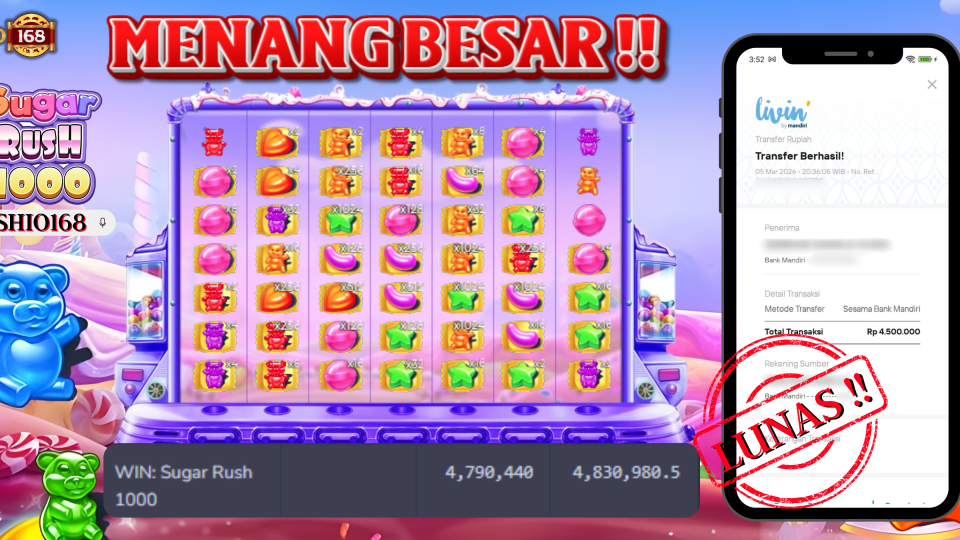 Dengan mekanisme permainan yang sederhana namun memberikan potensi multiplier besar, Sugar Rush 1000 terus menjadi pilihan utama bagi pemain yang mencari sensasi kemenangan besar. Keberhasilan member mendapatkan Rp4,7 juta ini membuktikan bahwa jackpot besar masih sangat mungkin terjadi.